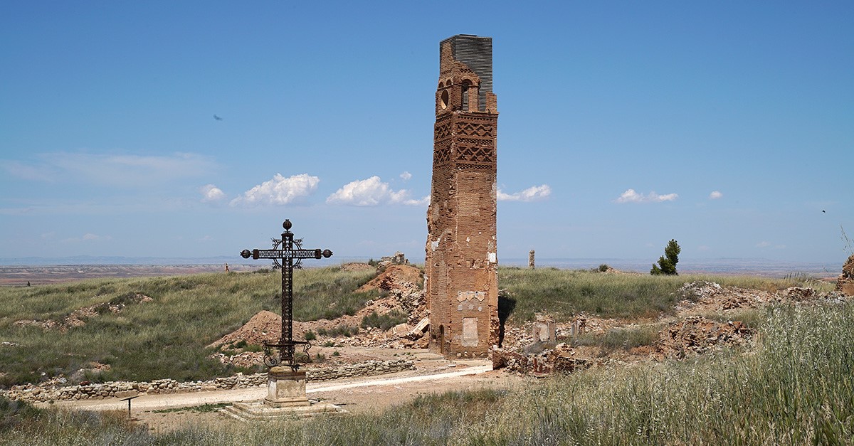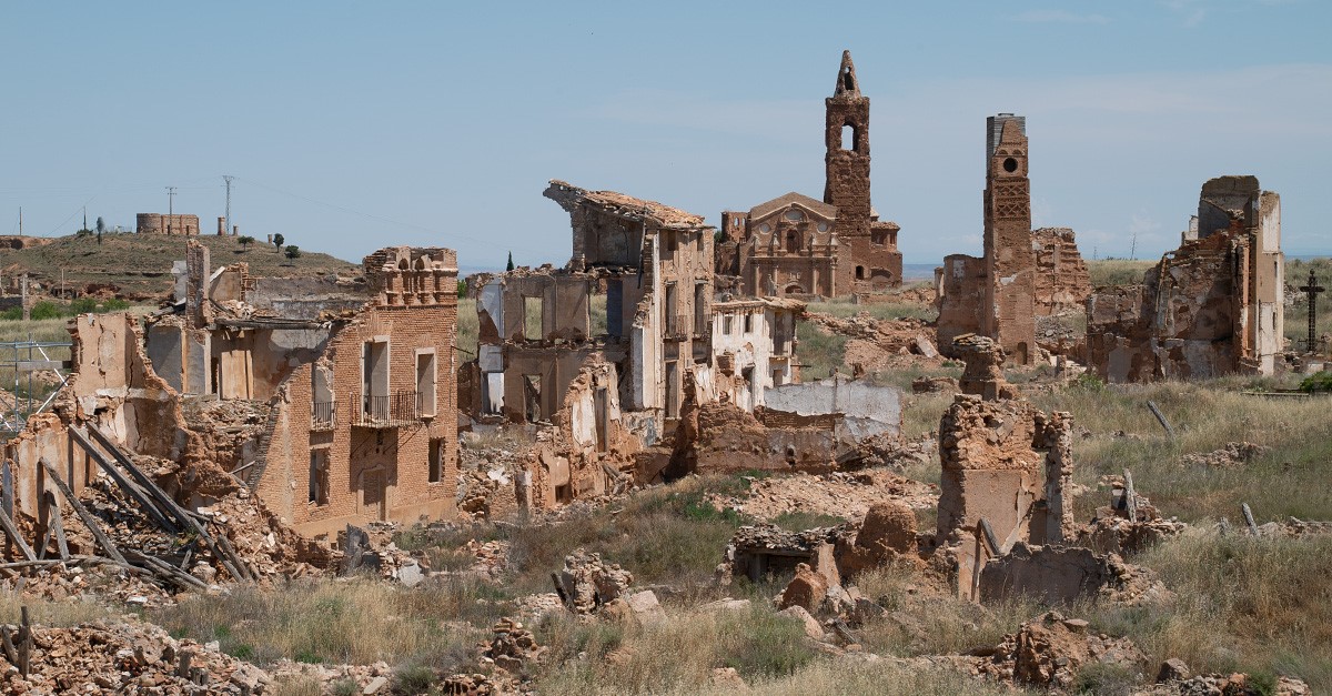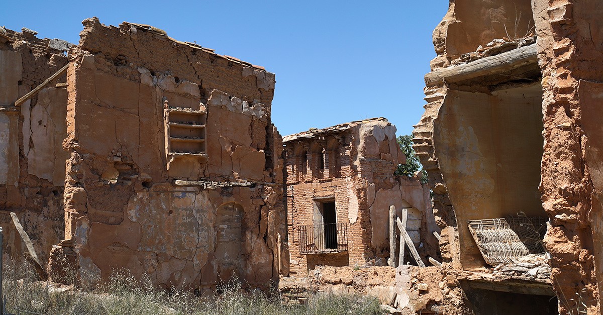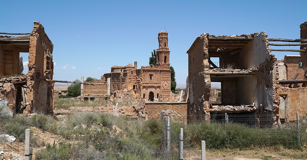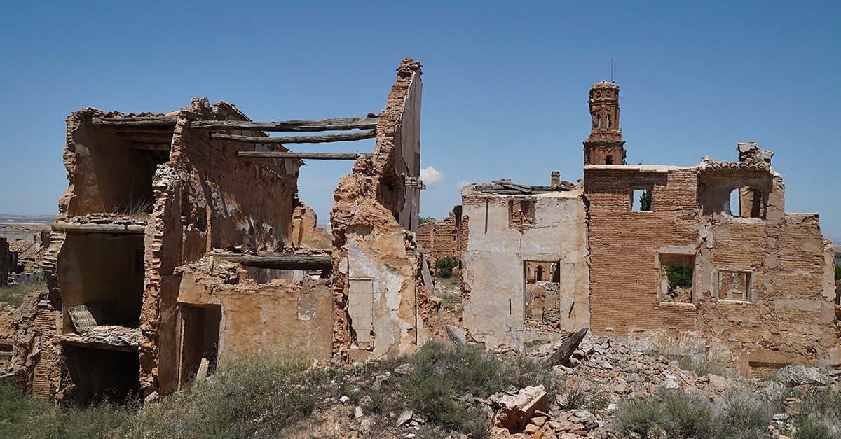 Belchite es uno de los pueblos fantasma más famosos y visitados de España. Ubicado en la provincia de Zaragoza, a pocos kilómetros de la ciudad, fue el escenario de una batalla de la Guerra Civil, cuyas cicatrices se ven en sus ruinas. Aunque el Ayuntamiento organiza visitas guiadas, hoy te proponemos recorrerlas desde el aire.