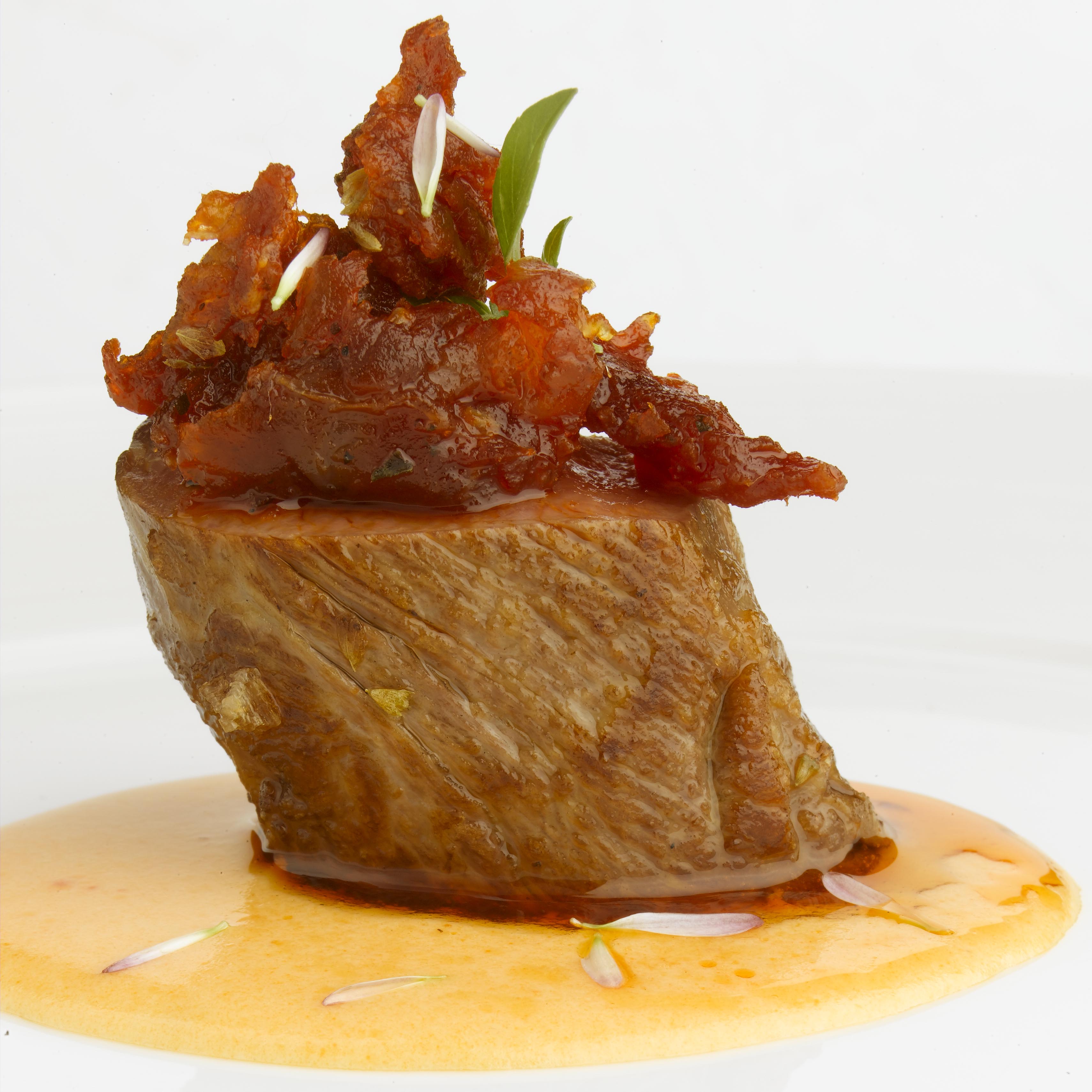 Solomillo ibérico con puré de matanza, orégano y pimientos, por Toño Pérez