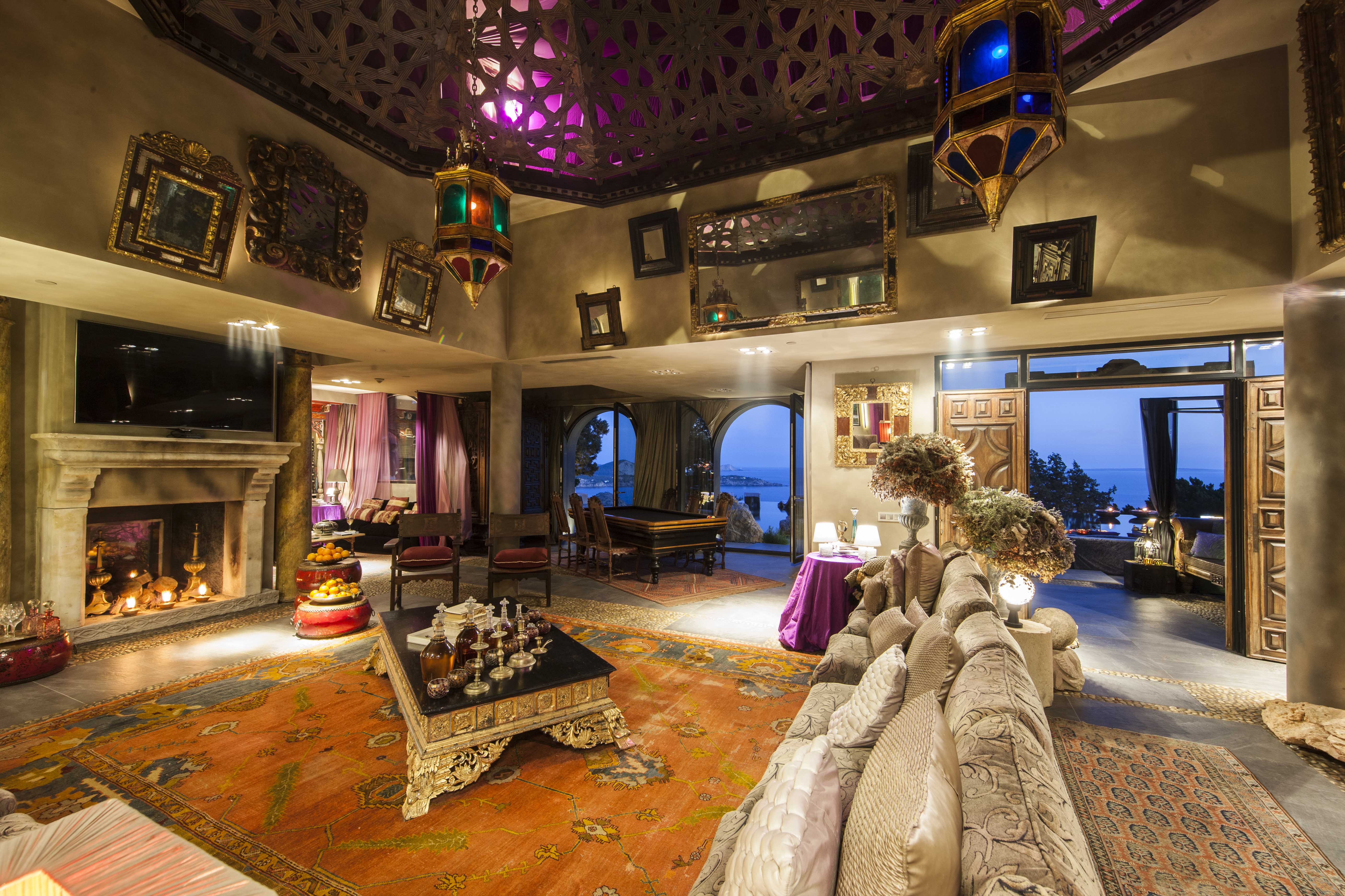 En la planta baja de la villa se encuentra el salón, la biblioteca, la cocina, una fuente interior, y el aseo de invitados. En la torre se localiza el dormitorio principal que alberga la tercera colección de cruces coptas más grande del mundo, un amplio baño, un vestidor y una sala en la que reposan auténticos tesoros artísticos e históricos. En la parte superior la extensa terraza que corona la edificación principal permite disfrutar de agradables veladas al aire libre en la mejor compañía.