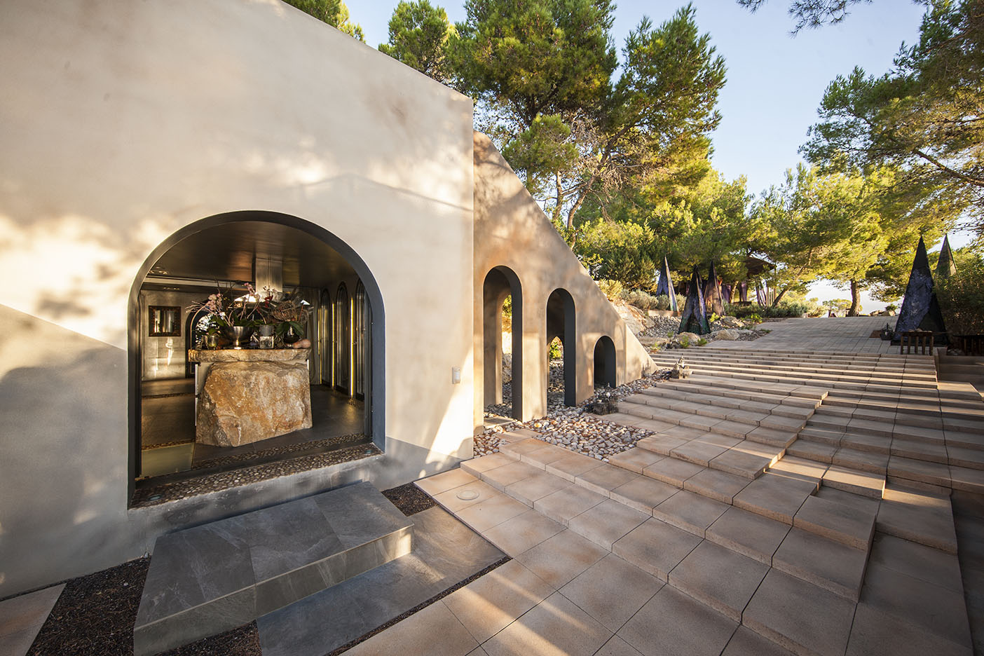 Además, sus residentes y visitantes podrán disfrutar de evocativos miradores, pasear a lo largo de sus espectaculares campos de lavanda, degustar los manjares de su huerto privado e incluso una zona interior que rememora el espíritu más campestre de Ibiza. No sólo posee diferentes ecosistemas, Es Bosc cuenta con espacios y rincones idílicos, como su patio de naranjos, un lugar mágico con una pareja de escaleras a modo de contrafuerte, su amplia biblioteca o su fuente interior desde donde el agua fluye como parte de la esencia de toda la propiedad.